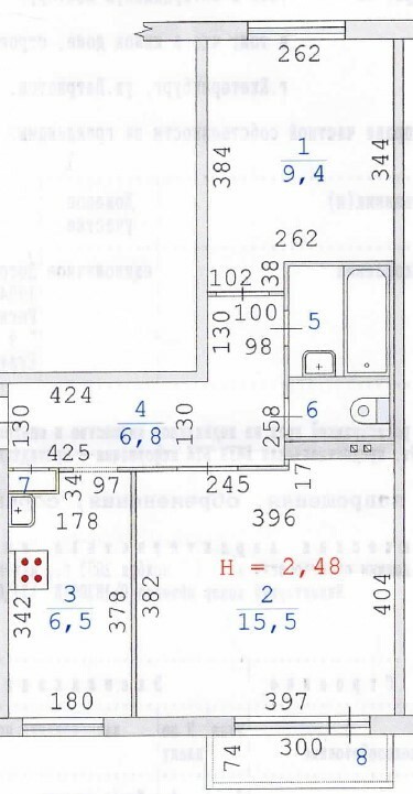 Общая площадь: 42.2м2